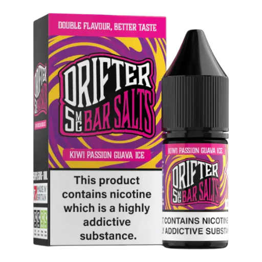 The Drifter Bar Salts range features concentrated flavours blended with nic salts at 5mg,10mg and 20mg strengths.